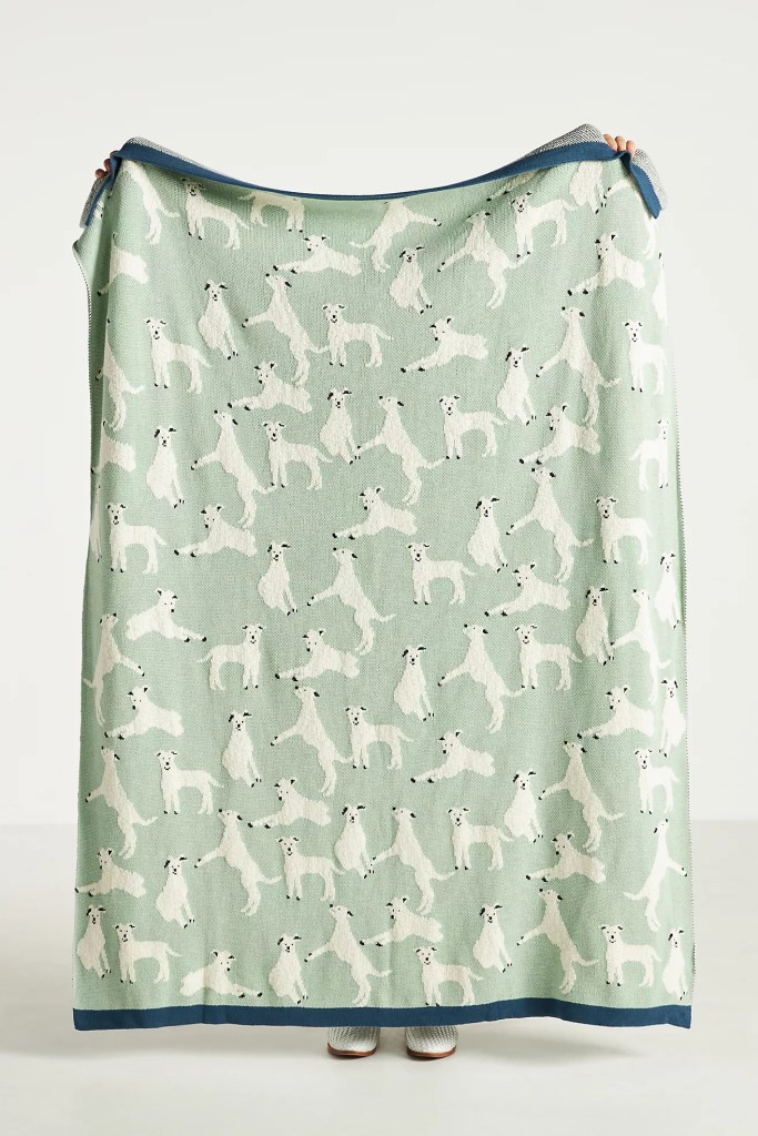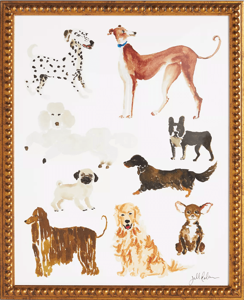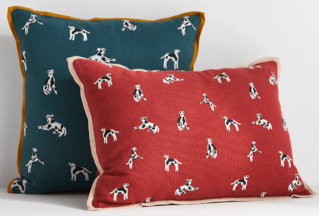 I was inspired one day while looking through Anthropologie’s 2023 home decor. As a self-proclaimed dog lover, I couldn’t get over the cute illustrated dog blankets, pillows, artwork, and lamps. With a quick search, I also found that Rejuvenation, York Wallcoverings, Neiman Marcus, and West Elm had also joined the trend of offering tasteful and modern dog-centric decor.