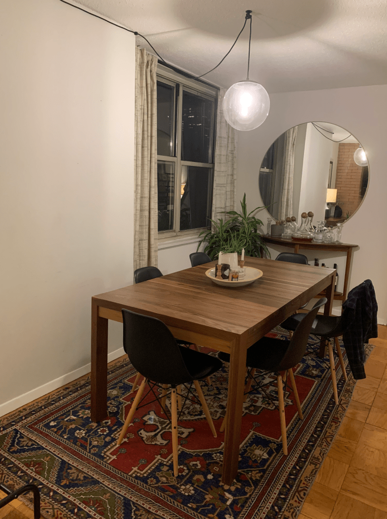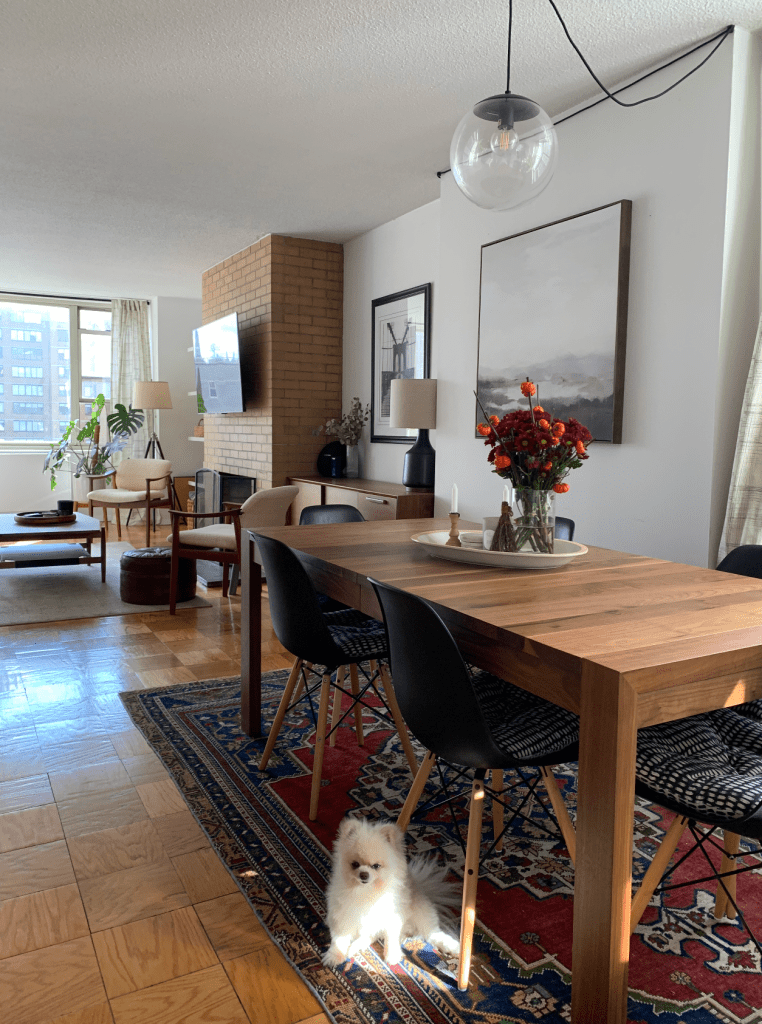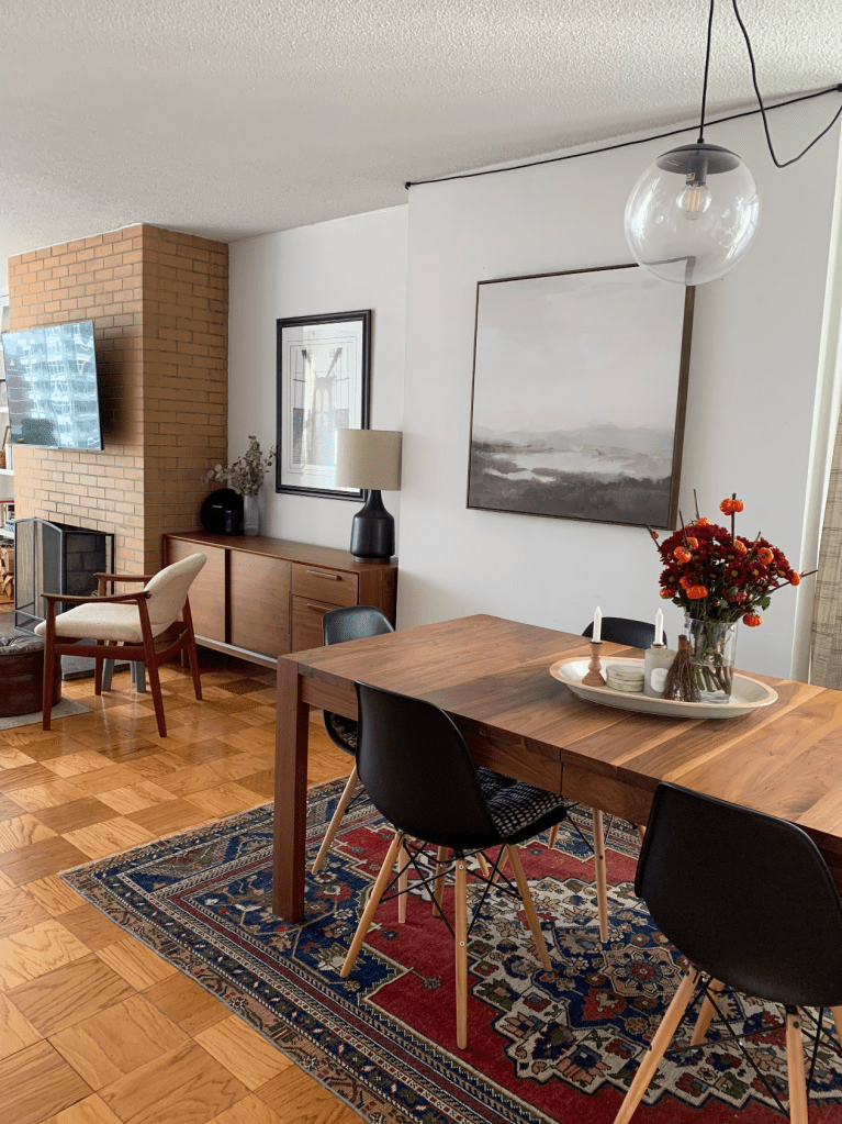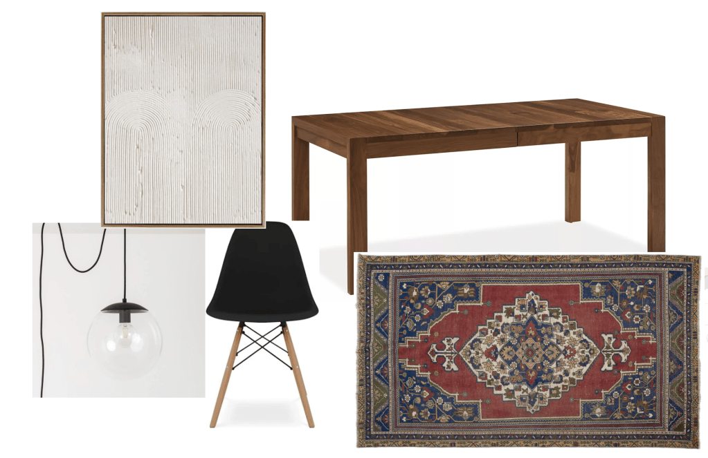 So to say the obvious, the table was not cheap. This was our “high-cost” item which meant we needed to get real about the supporting actors of the space: The chairs, rug, lighting, and art.